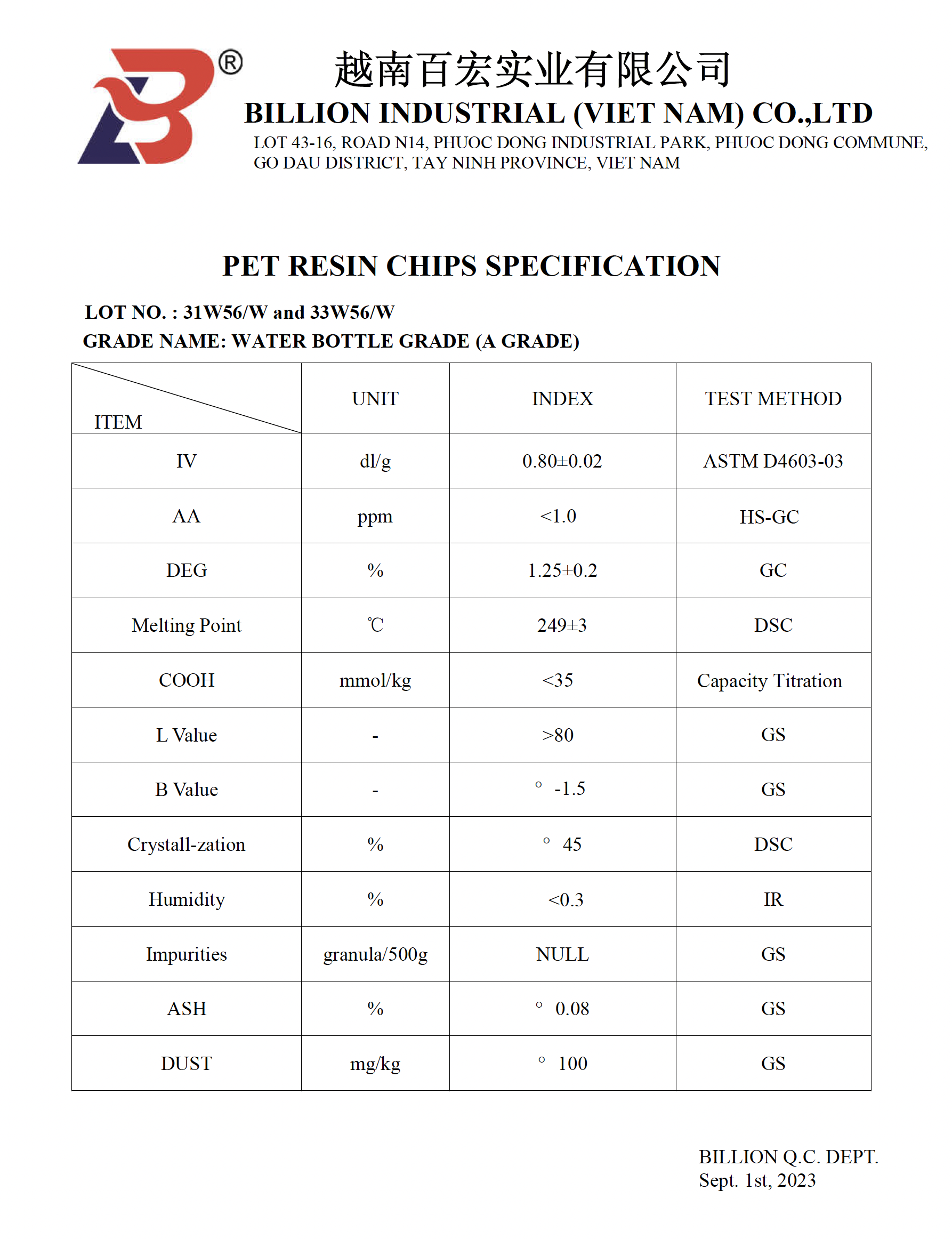 BILLION Group is a leading Chinese enterprise in polyester new materials and the integrated petrochemical industry chain. Its subsidiaries focus on the research and production of food-grade PET bottle flakes, with products widely used in packaging for drinking water, beverages, edible oils, pharmaceuticals, and food. With production bases in Fujian, China, and Vietnam, the company boasts significant production capacity and an internationalized layout, serving as a high-quality supplier for numerous well-known domestic and international brands.