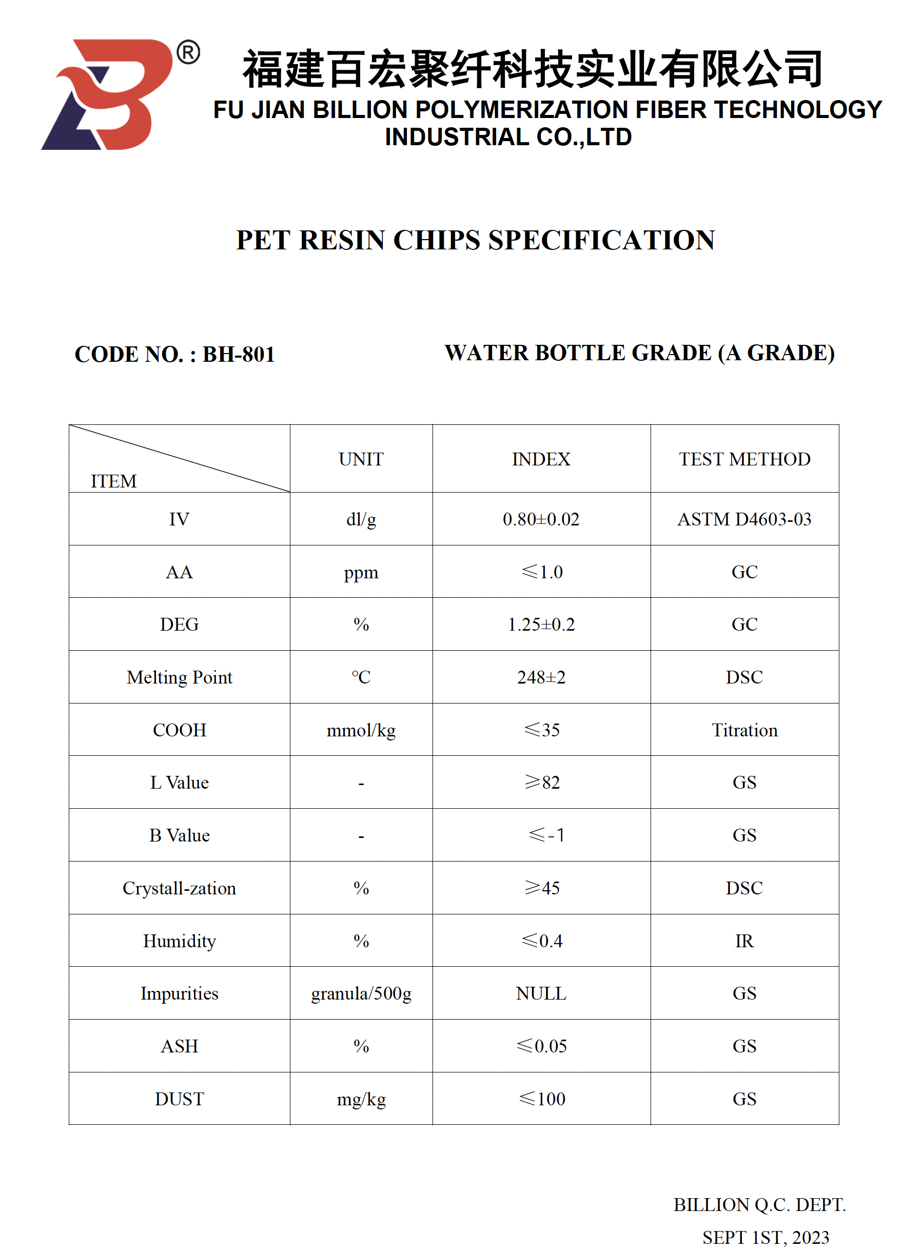 1. Water Bottle-Grade Polyester Chips (e.g., BH-801)