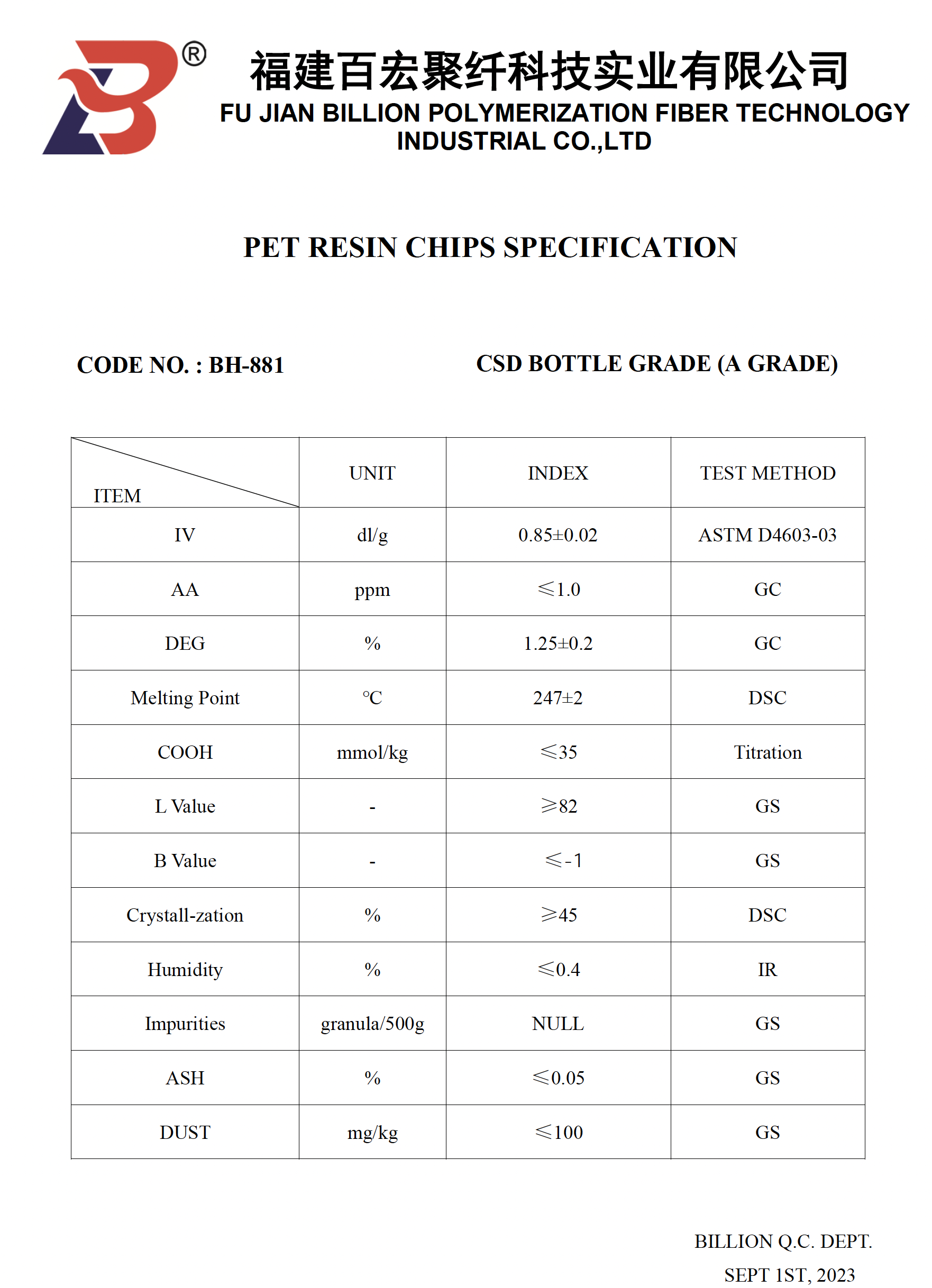 3. Carbonated Beverage Bottle-Grade Polyester Chips (e.g., BH-881)
