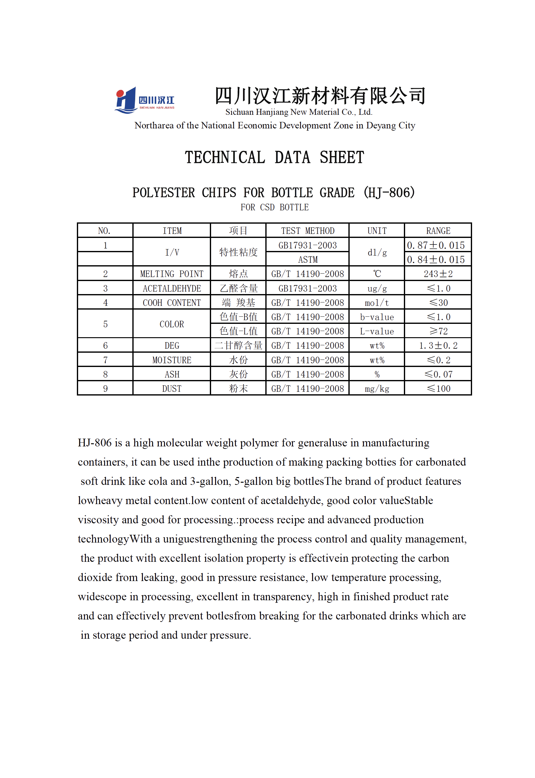 2. HJ-802 Oil Bottle/Sheet-Grade PET Chip