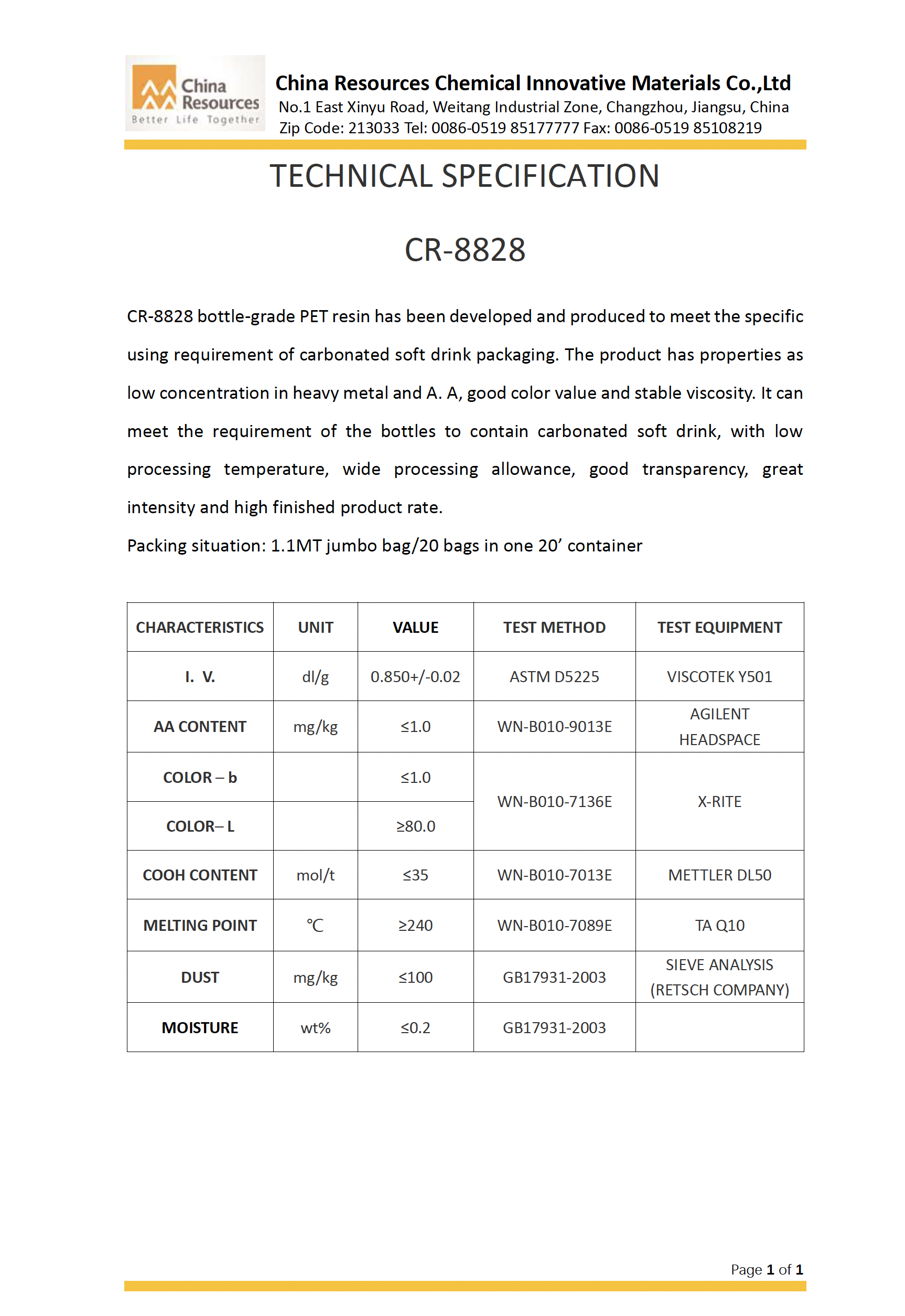 3. CR-8828 Carbonated Beverage Grade PET