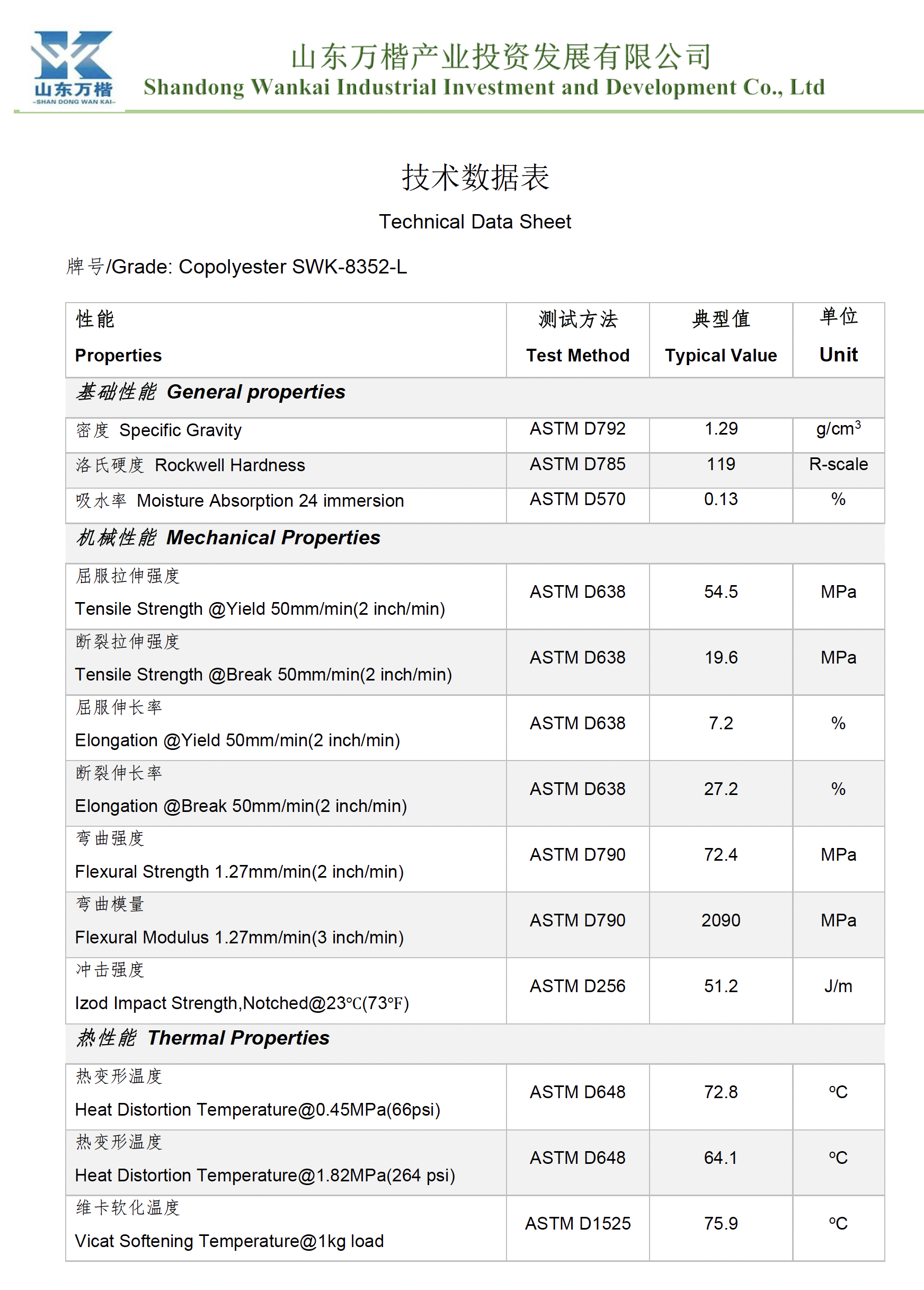 Wankai PETG is a high-performance copolyester brand under Shandong Wankai Industrial Investment Development Co., Ltd., dedicated to providing PETG material solutions with high transparency, excellent toughness, and strong chemical resistance, widely used in packaging, medical devices, electronics, stationery, and 3D printing applications.
